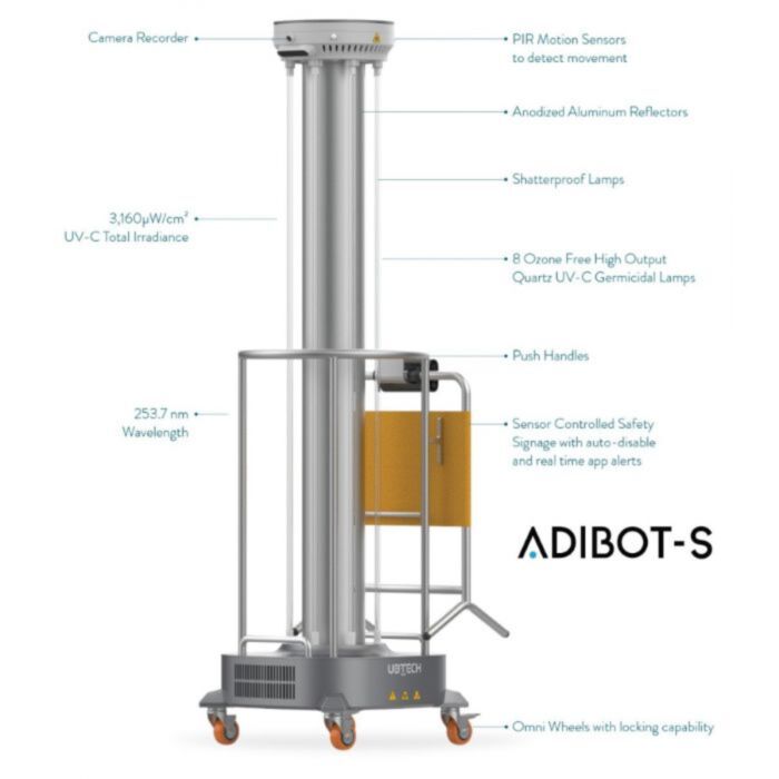Az ADIBOT-A egyesíti az UBTECH robotikai és mesterséges intelligencia szaktudását az UV-C technológiával, amely a káros kórokozók DNS-ének és RNS-ének hatástalanításával fertőtleníti a célzott felületeket és a levegőt. Nemcsak klinikailag bizonyított és tesztelt, hanem képes kiküszöbölni a másodlagos szennyeződés lehetőségét is.